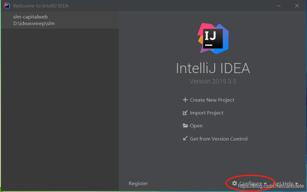 第二步:重启idea,从启动页面进入configure ->setting