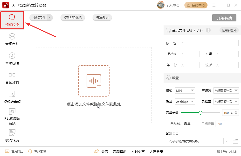 步骤一:电脑安装好闪电音频格式转换器后,打开软件,选择【格式转换】