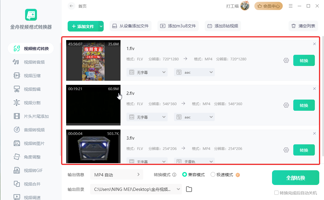 金舟视频格式转换器是一款支持多种视频格式转换、音频提取、视频合并、视频转GIF、视频压缩等功能的视频格式转换工具。软件界面简洁清晰,功能操作简单,电脑新手也能秒上手!
