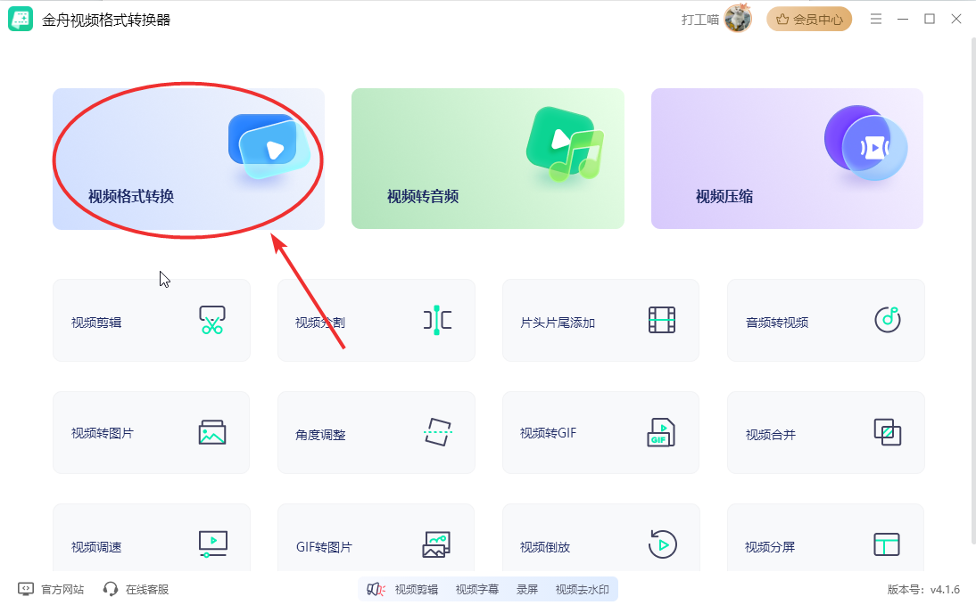 第一步:电脑安装好金舟视频格式转换器后,双击打开软件,选择【视频格式转换】