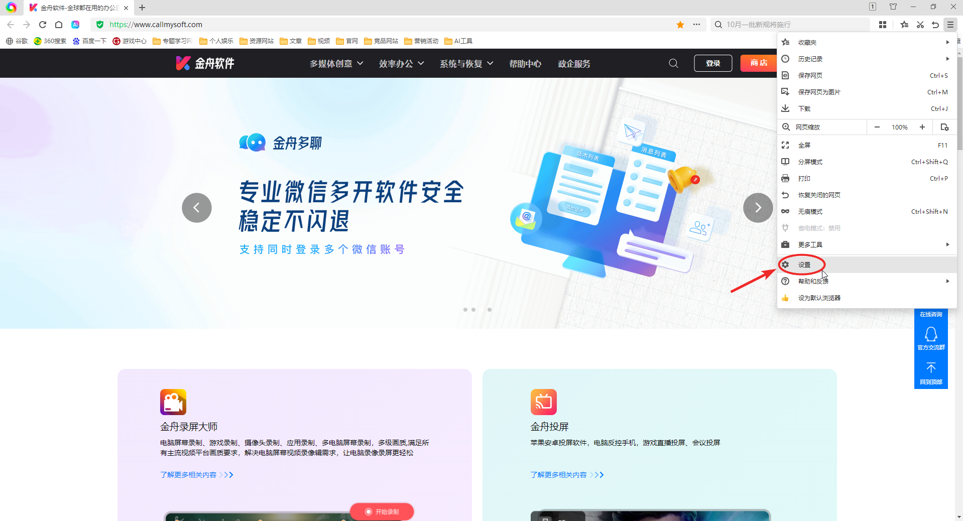 第一步:打开360浏览器,点击右上角「菜单」图标,选择「设置」功能。快捷键Alt+F可以快速打开菜单栏。