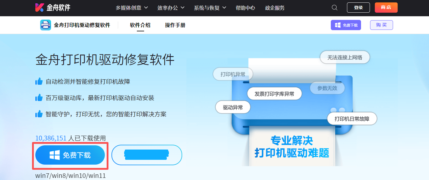 二、借助金舟打印机驱动修复软件(打印机新手必备好)