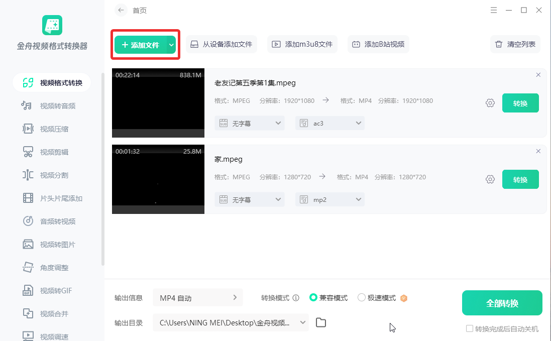 金舟视频格式转换器是Windows系统的专业转换工具,以"速度快、质量高、易上手"著称,特别适合批量处理MPEG文件。
