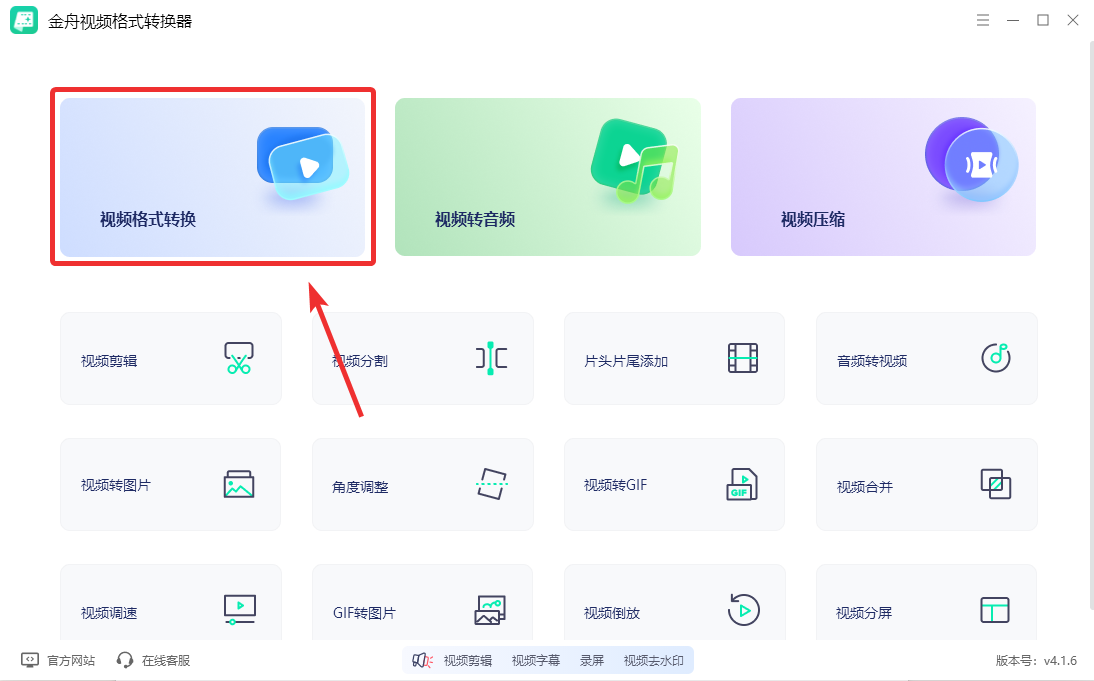 步骤1. 选择功能:电脑下载安装好金舟视频格式转换器,选择视频格式转换功能。