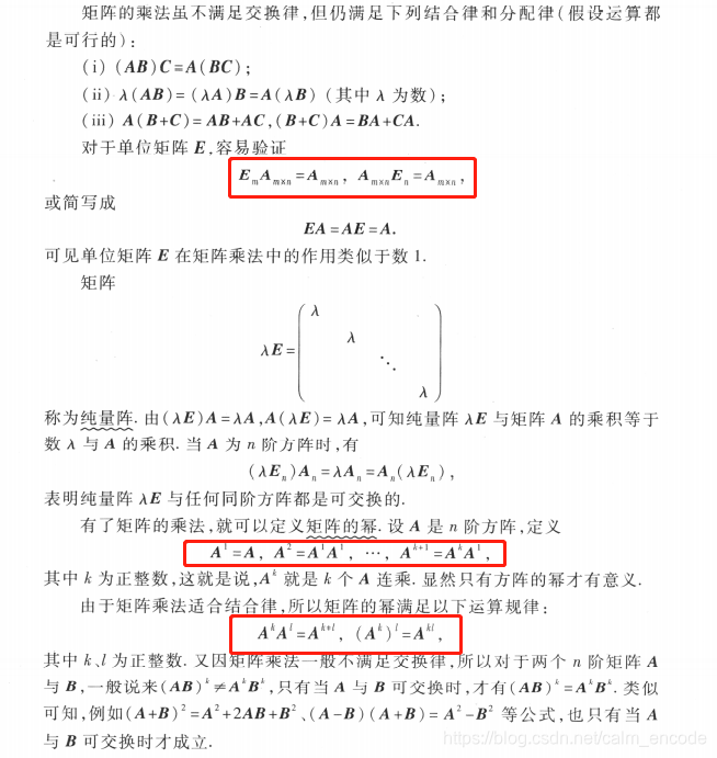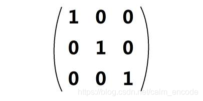 单位矩阵:在矩阵的乘法中,有一种矩阵起着特殊的作用,如同数的乘法中的1,这种矩阵被称为单位矩阵。它是个方阵,从左上角到右下角的对角线(称为主对角线)上的元素均为1。除此以外全都为0。