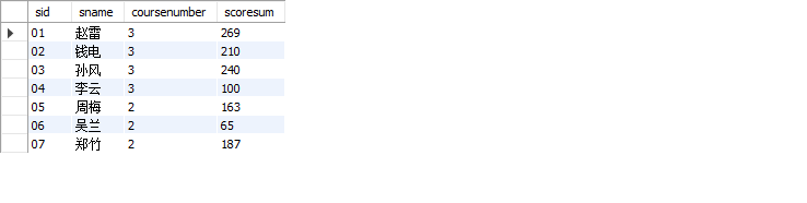 #查询所有同学的学生编号,学生姓名,选课总数,所有课程的成绩综合