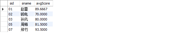 #分析,我们可以根据学生编号将成绩分组,对分组的score求平均值,最后在选取结果中利用AVG函数进行求平均值并判断是否大于等于60即可