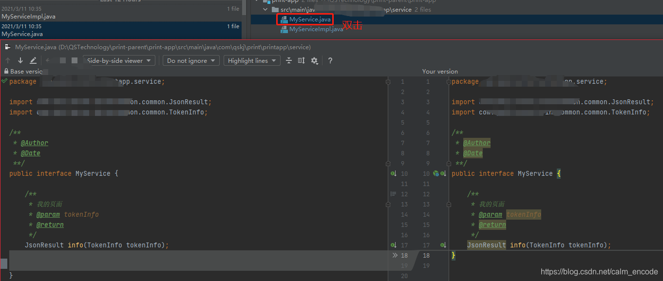 3.选择其中一个文件双击,可以查看其前后差异。