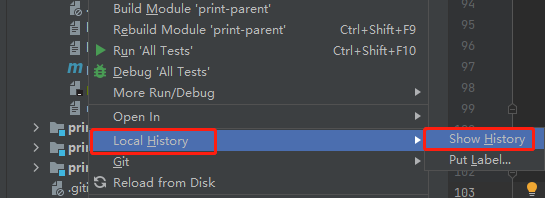 1. 打开项目,如果回退整个项目的代码,选择项目->Local History->show History。