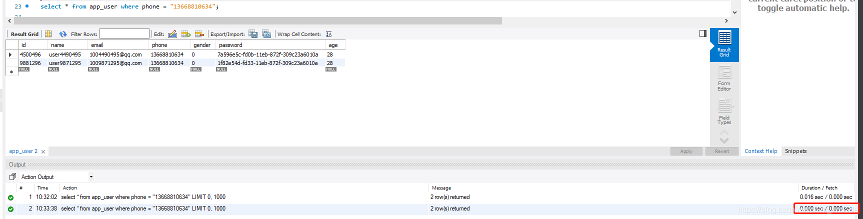 结果可知,第一次查询为0.016s,而第二次查询为0s
