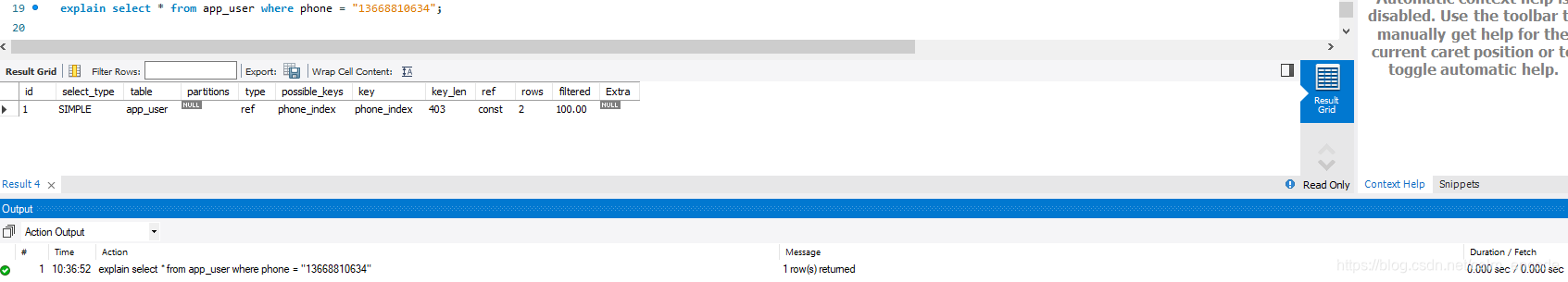分析可知,增加了索引之后,查询只是对结果集的两行进行扫描。
