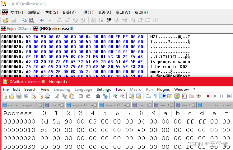 本文介绍了两种实用的反汇编方法:一是利用C32Asm软件进行反汇编及十六进制编辑,支持断点跟踪与代码修改;二是通过Notepad++安装HEX-Editor插件实现文件的多种进制查看。
