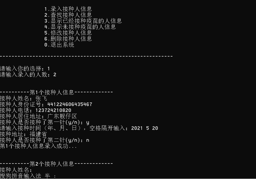 本系统用C语言实现疫苗接种人员信息管理,包含录入、查找、显示等六大功能模块,通过结构体数组存储接种信息,适合Devc++编译器运行。