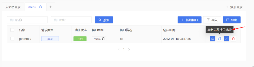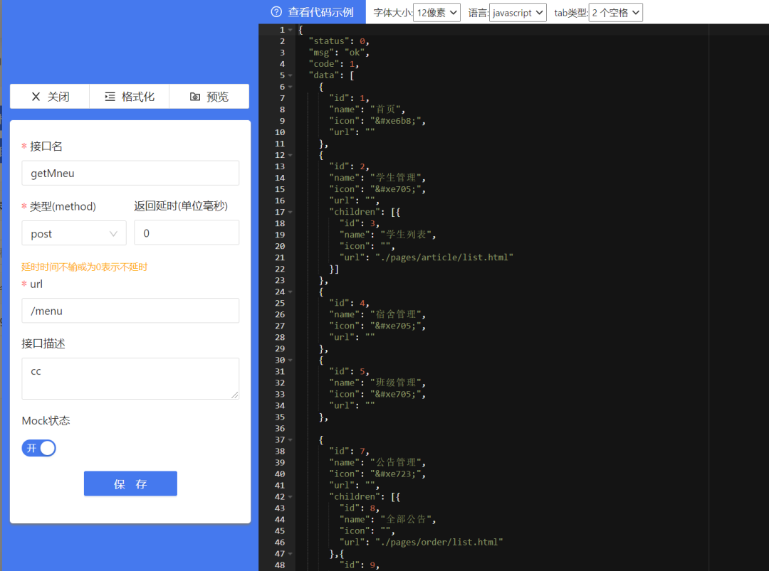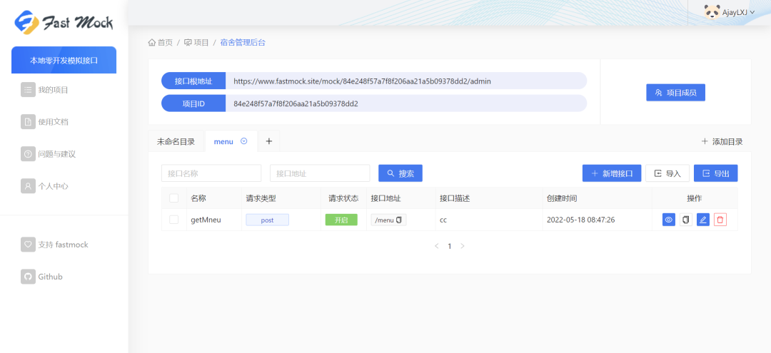 将项目源码中的json/menu.json文件里的内容复制进接口内容中