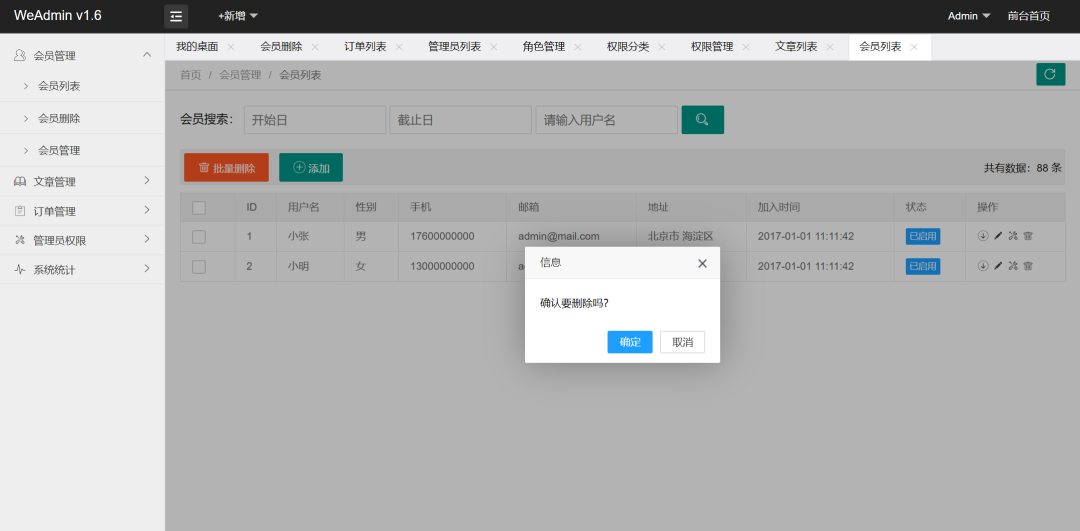 删除功能(弹出确认框)