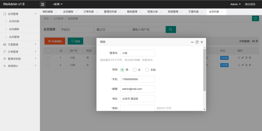 后台系统前端模板——WeAdmin