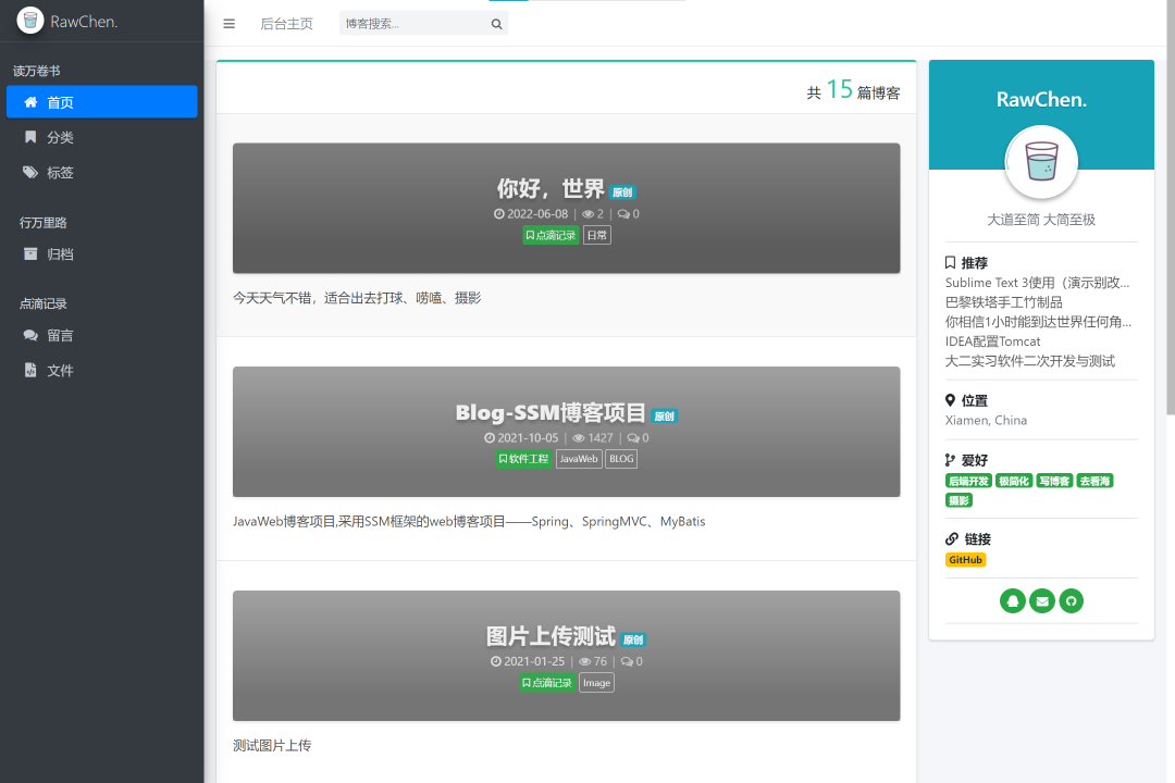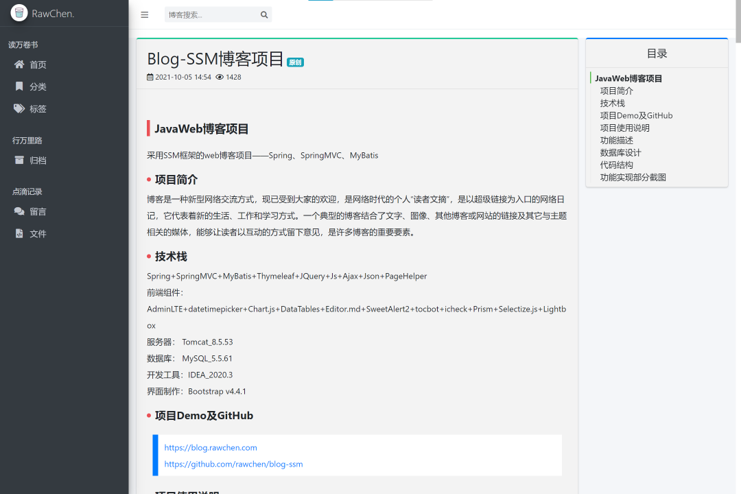 这是一个基于SSM框架的开源博客系统,实现了前后端分离,界面简洁互动性强。采用Thymeleaf、JQuery等前端技术,结合AdminLTE等组件,提供良好的用户体验。系统包括用户管理、文章发布、评论互动等功能,适合用作教学或个人项目。数据库设计包括用户、文章、评论等8张表,提供了丰富的功能和良好的交互性。