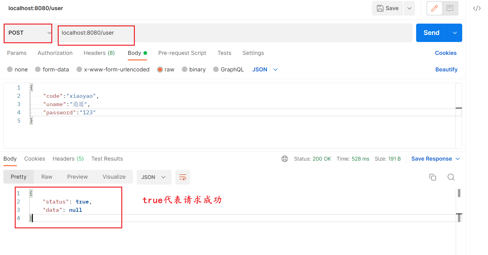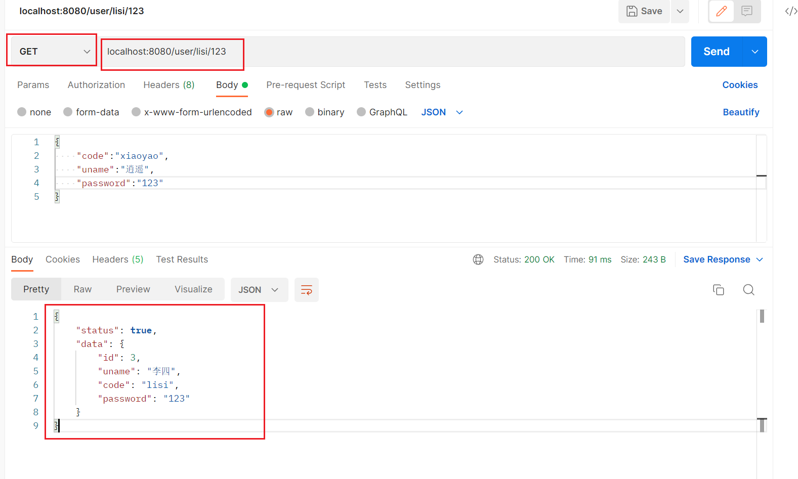以下使用Postman软件模拟请求,测试写好的业务代码