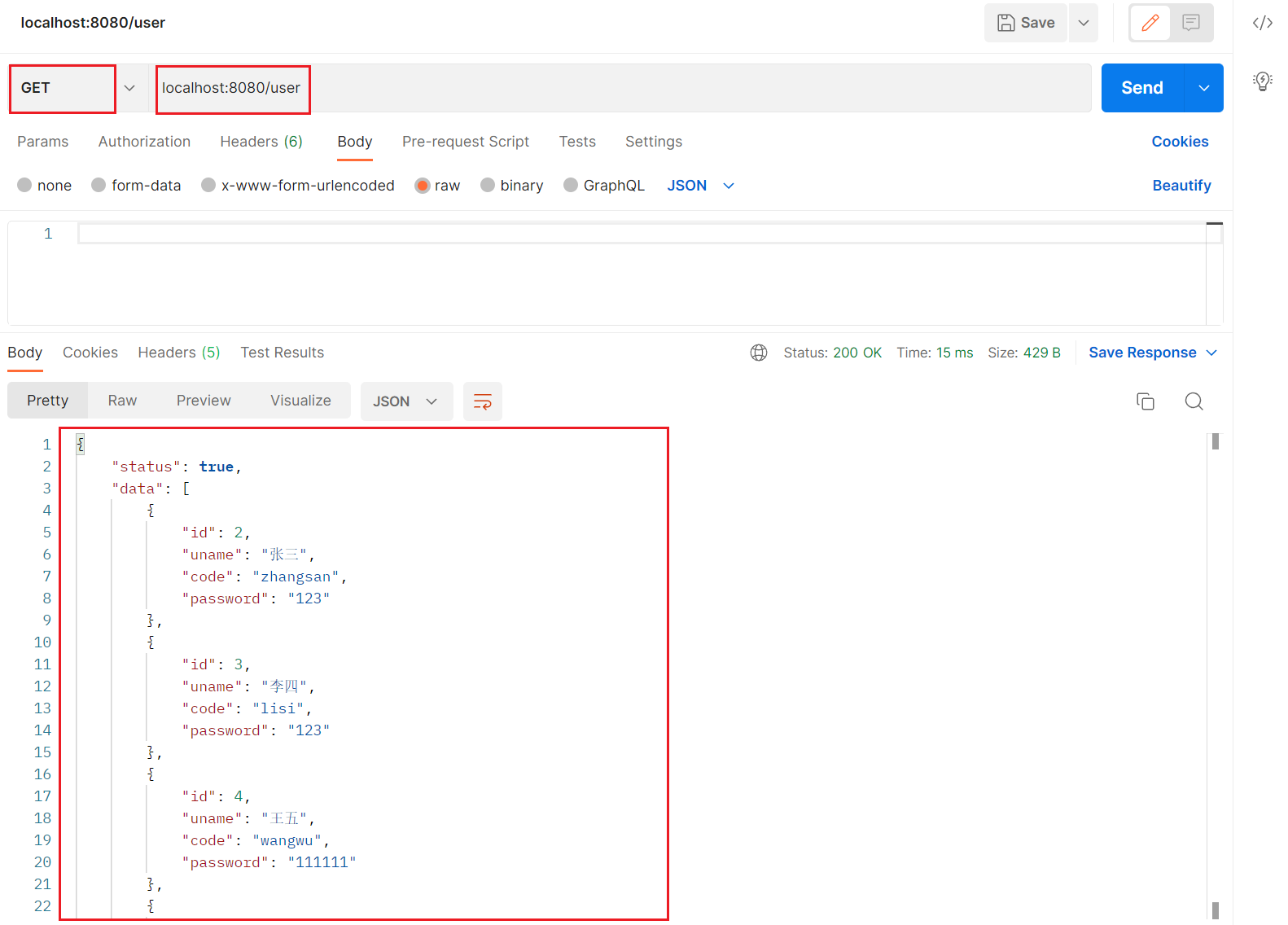 使用Get方法条件查询用户信息(根据用户名和密码查询)