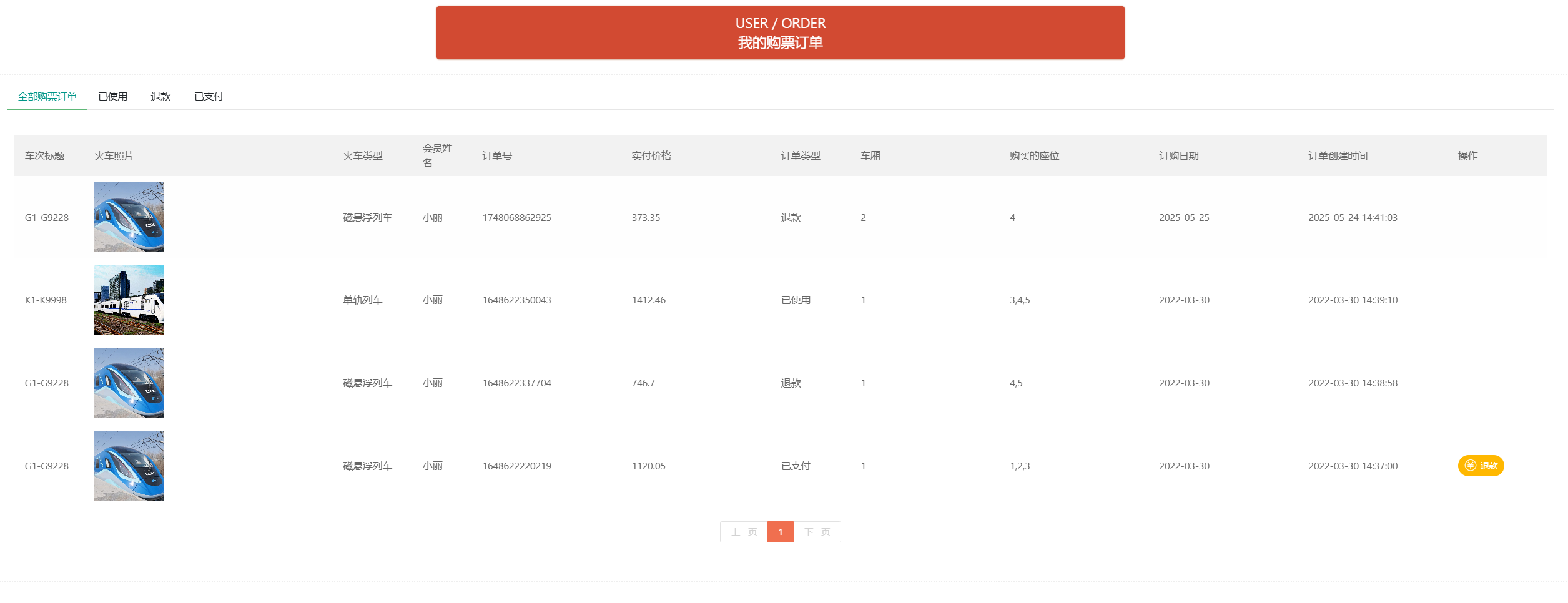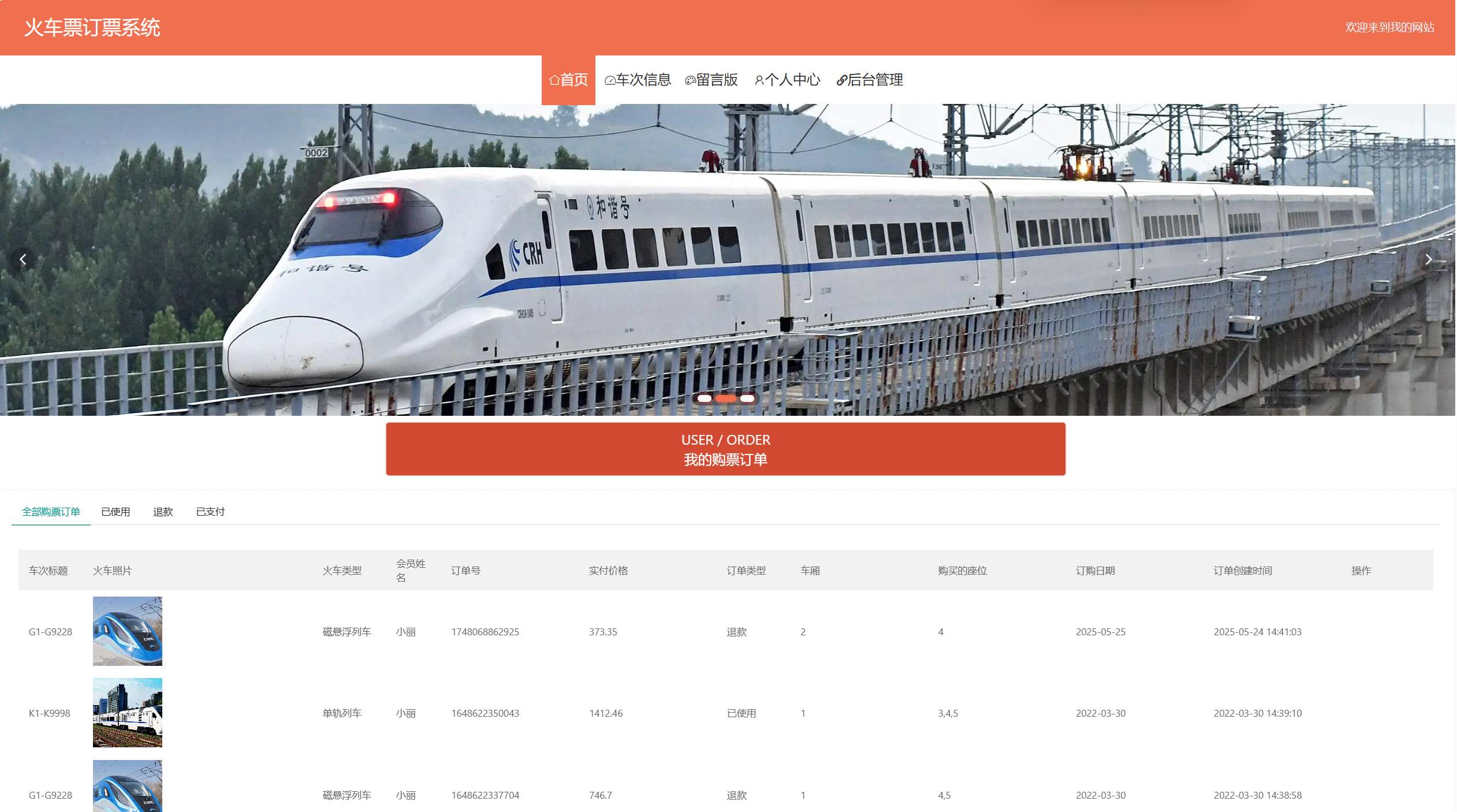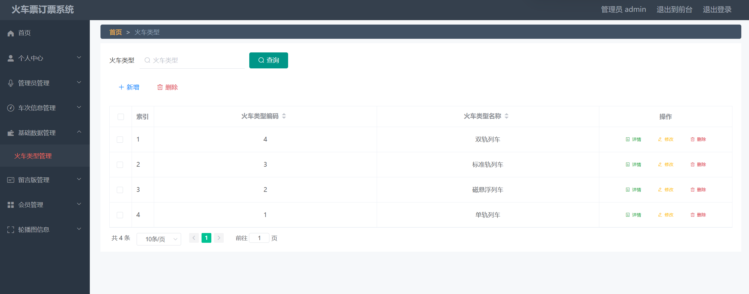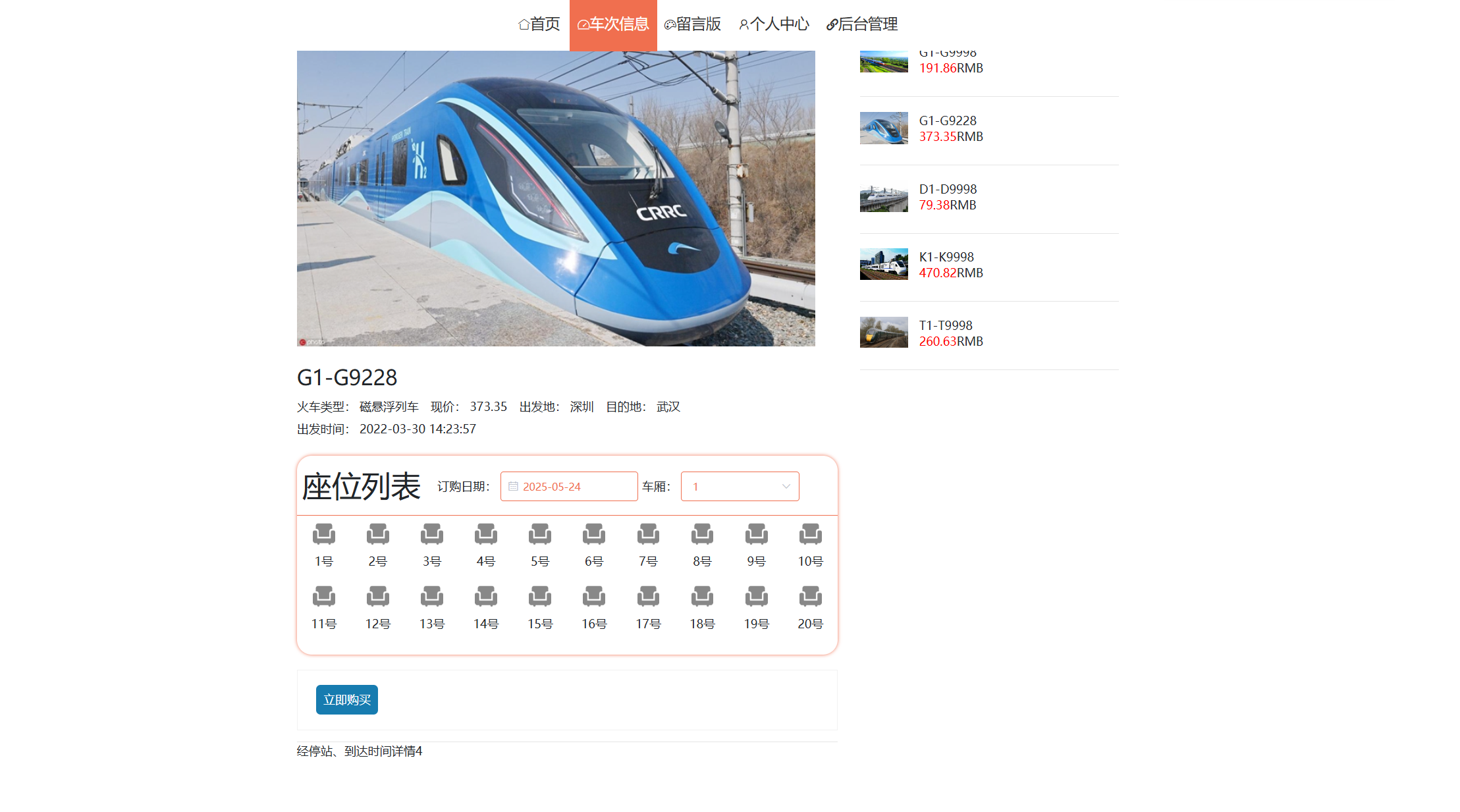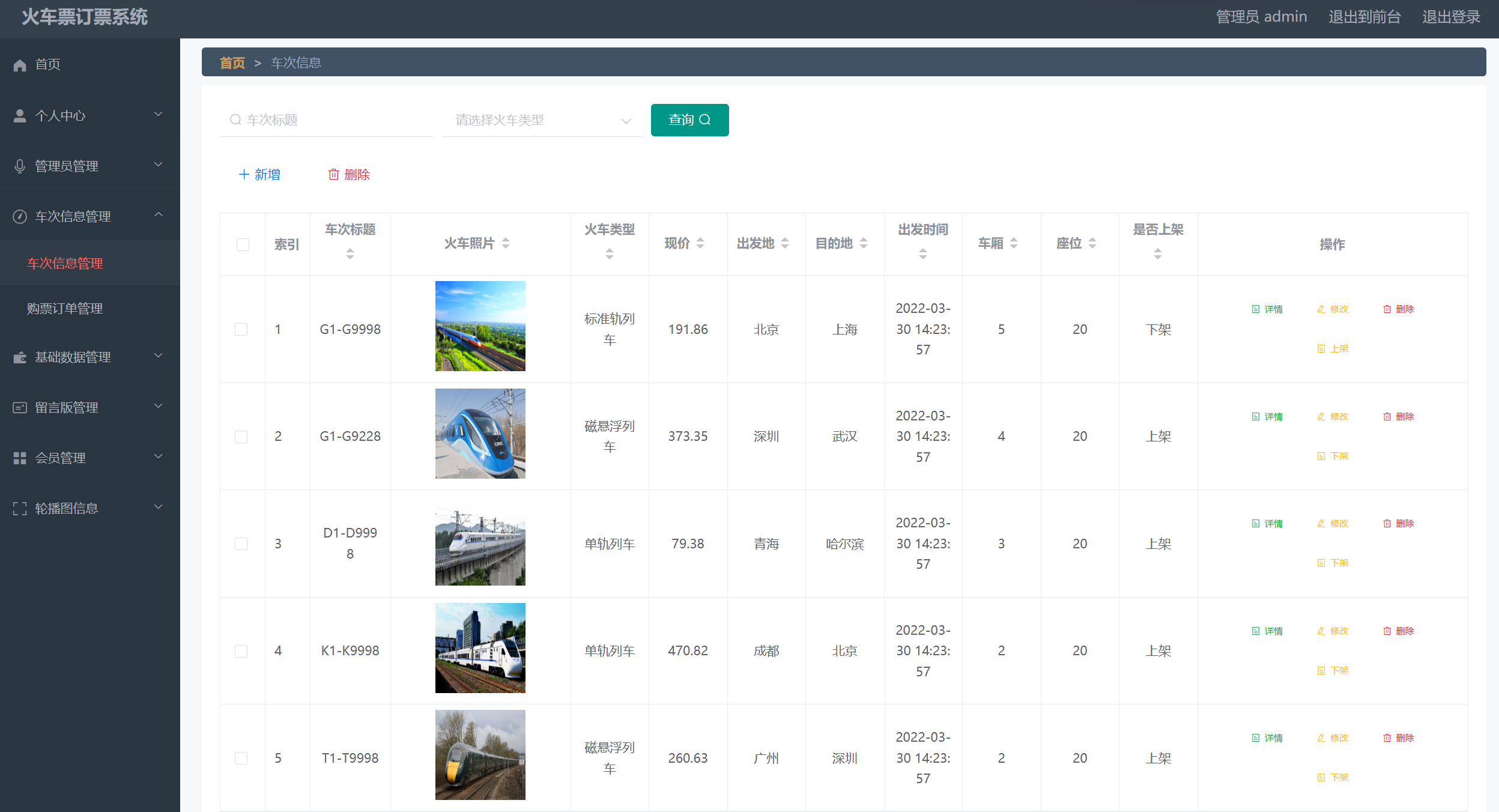 本系统涵盖基本的火车订票的基础功能,每个功能模块支持增删改查等操作,具体功能细节如下: