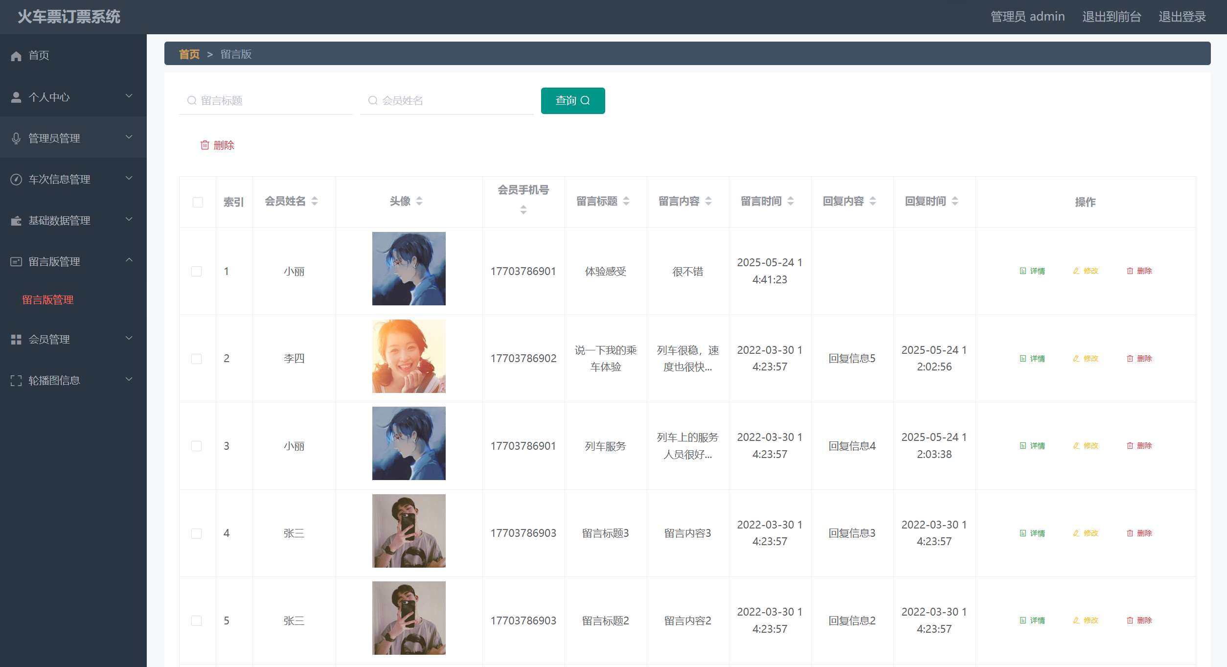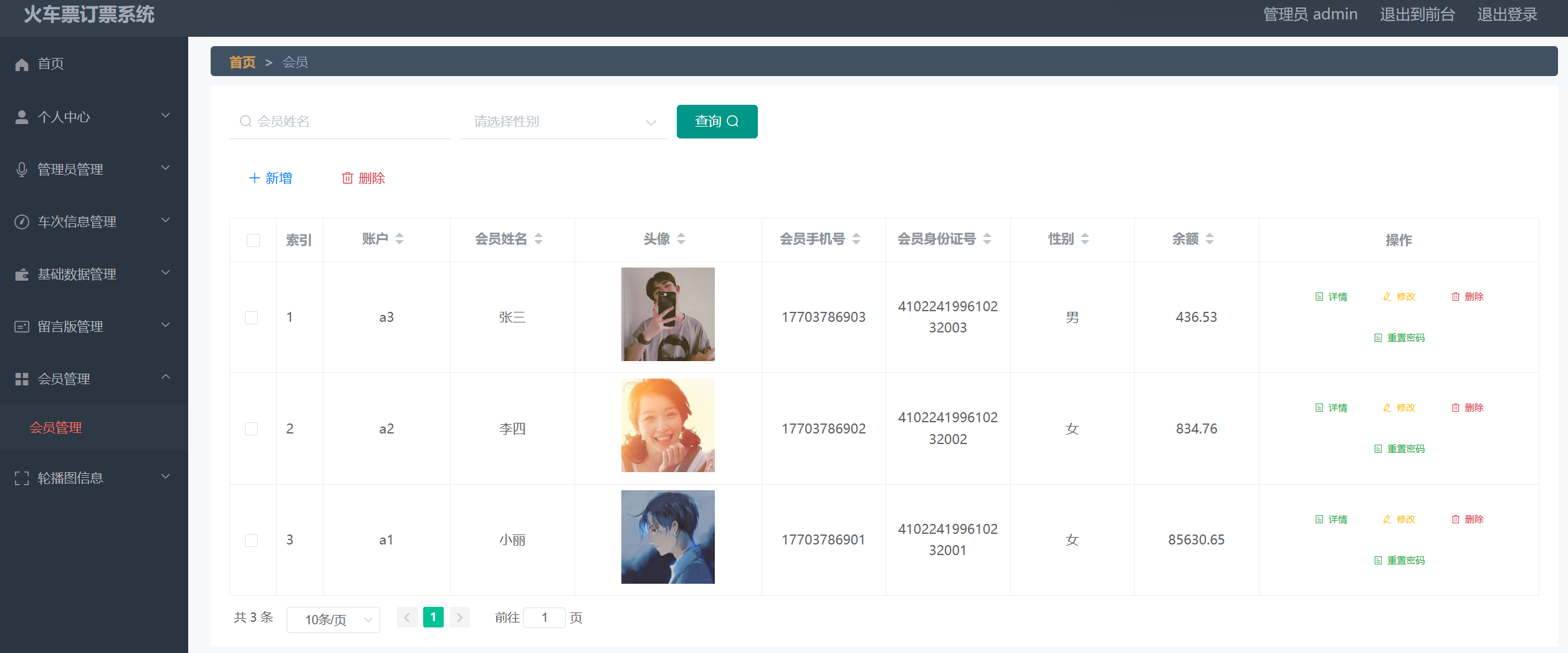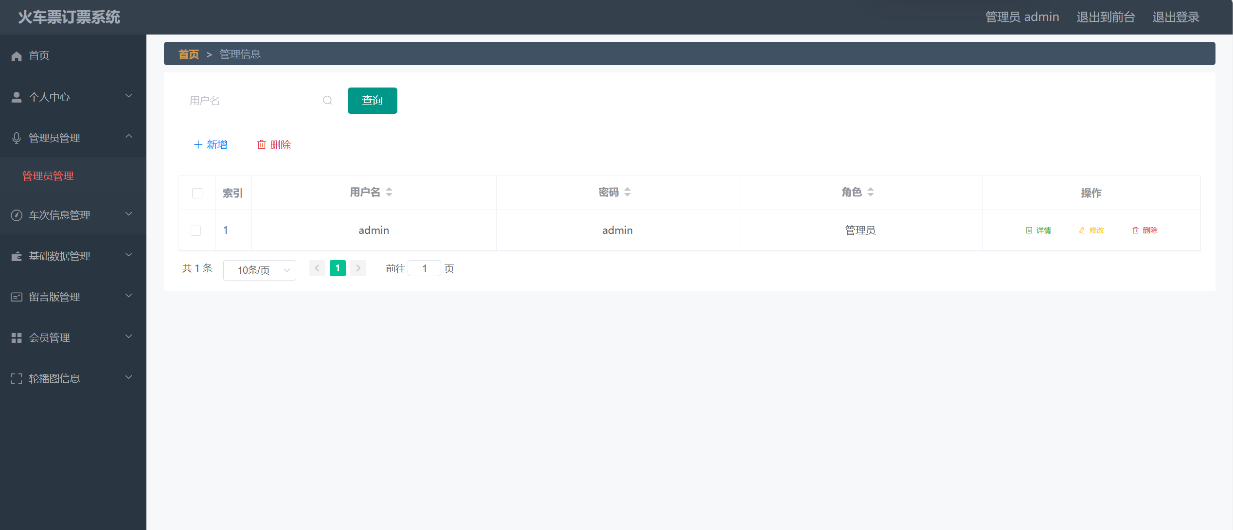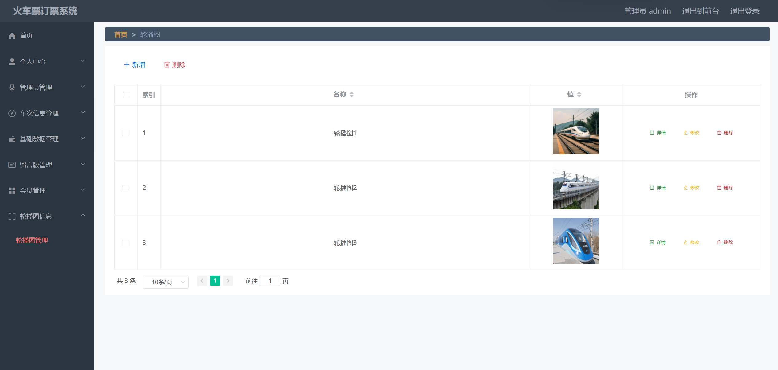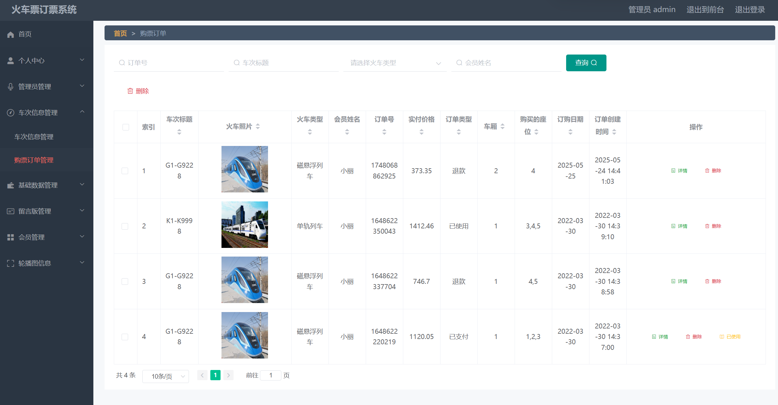 本系统涵盖基本的火车订票的基础功能,每个功能模块支持增删改查等操作,具体功能细节如下: