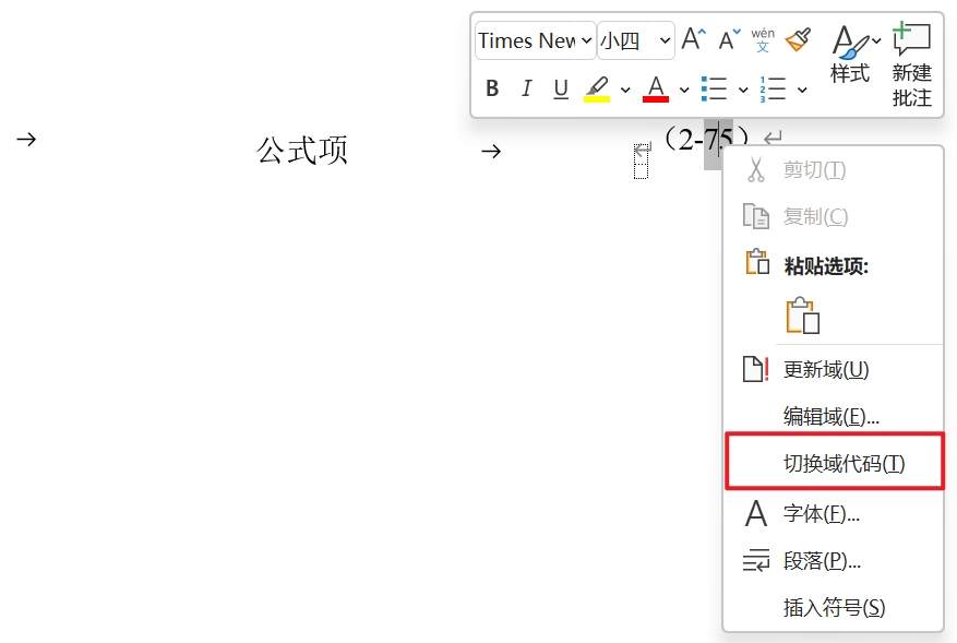 step1:右键公式标号,切换到域代码。
