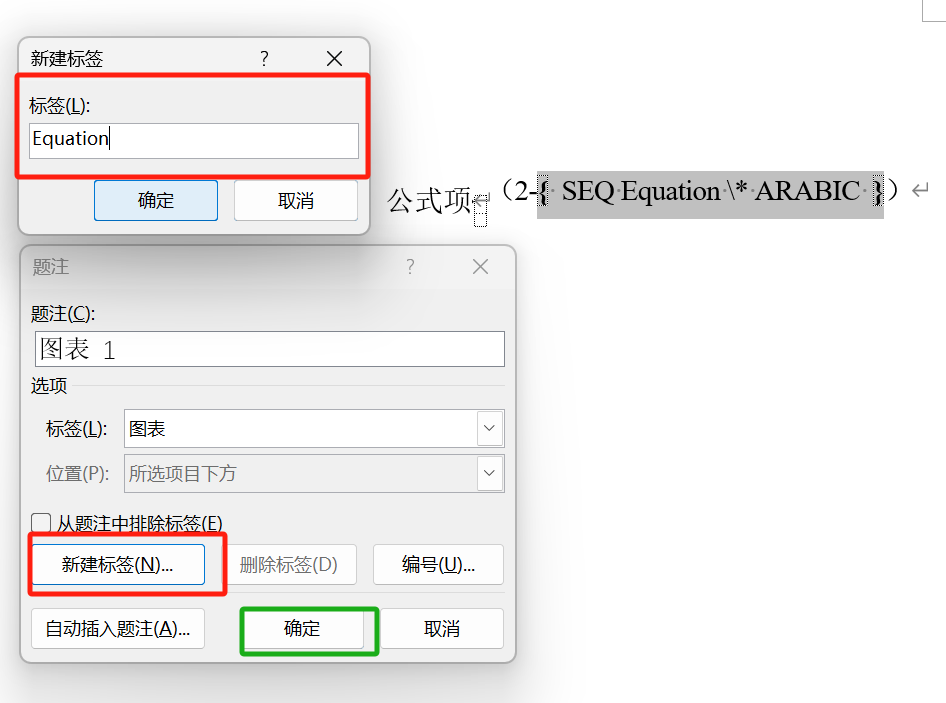step2:域代码视图下,找到题注名称,该文档的公式题注为 Equation 。