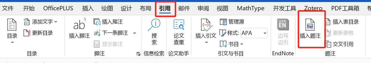 step3:在word的"引用"选项卡点击“插入题注”。