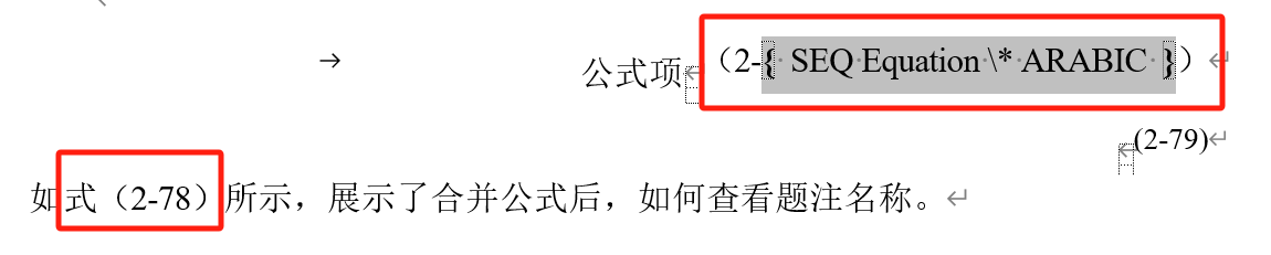 step5:创建成功后,根据原格式进行调整(自行处理)。(2-79)为新加入的题注。因为文档特殊问题,我的(2-)是手动添加,最好在标号前用快捷键 Alt+ctrl+Enter 输入样式分隔符,方便后续整项题注引用。