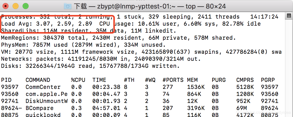 3.1 load avg:服务器负载情况,输入top可以看到系统当前1分钟、5分钟、15分钟内的平均load。根据服务器cpu核数计算,单台服务器4核的CPU正常的load avg是在4以下。