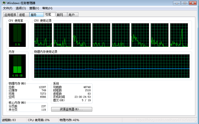 未开始测试程序前,物理内存使用40%: