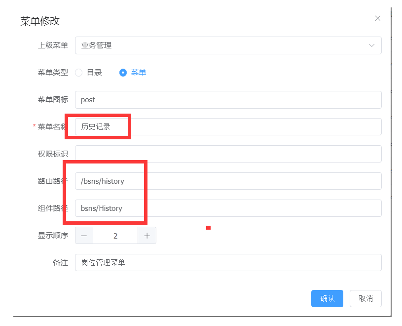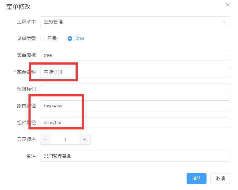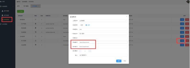 对应的菜单管理,修改下