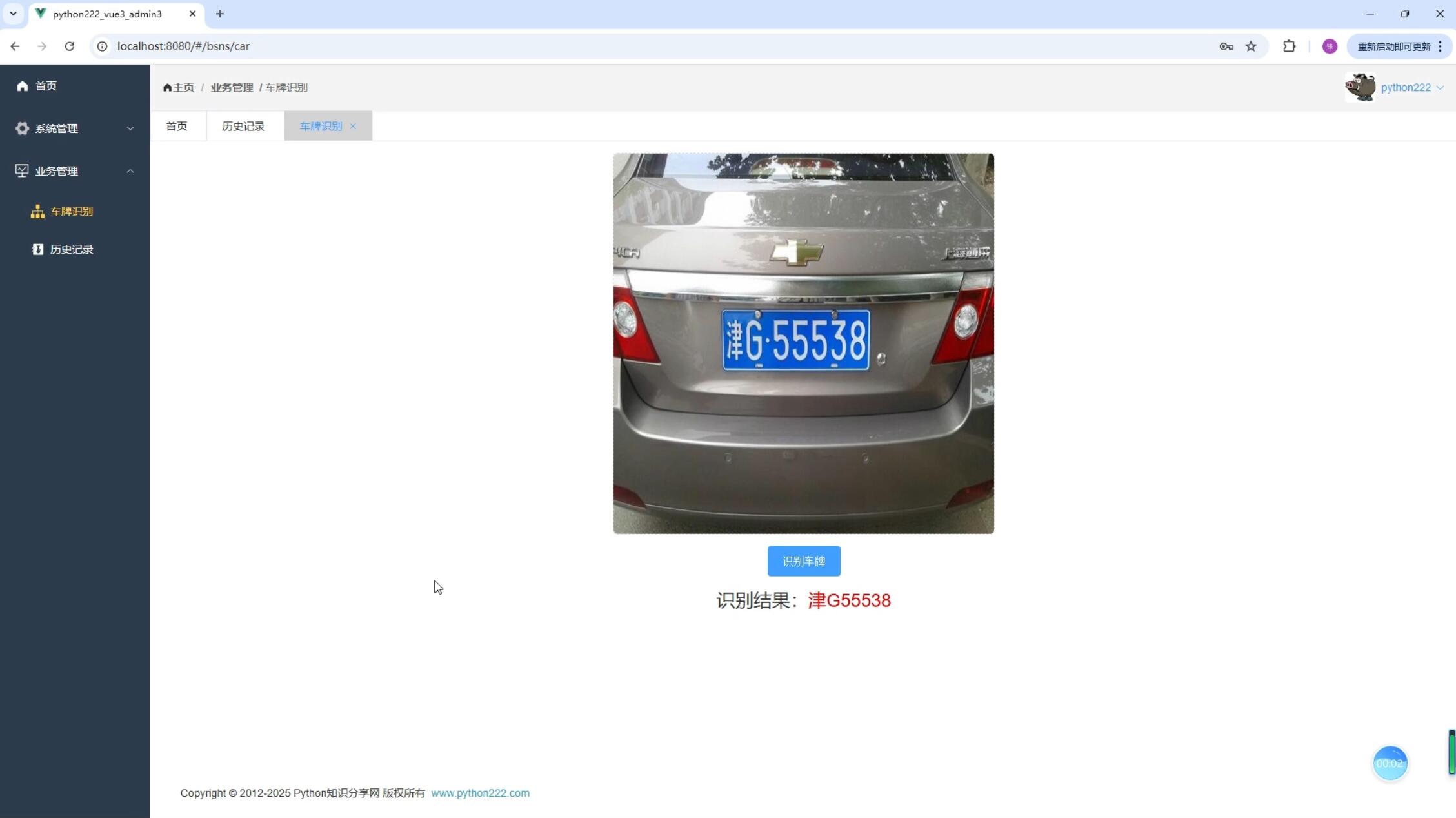 基于之前学习的Django+Vue通用权限系统,我们二次开发,改成车辆识别系统。