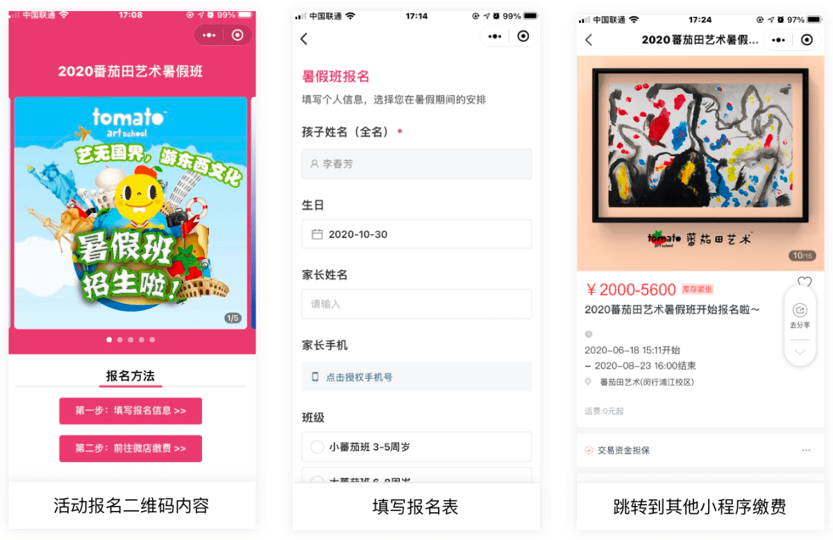 以课程报名为例,报名者扫码可查看课程介绍,填表报名: