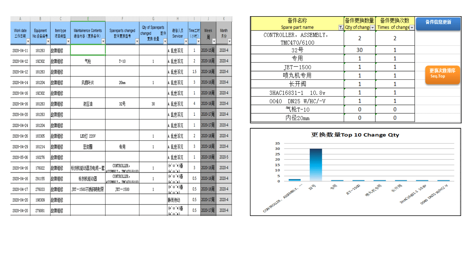 管理人员可以在后台将报修与维修等数据导出,并导入《莱特公司备件统计管理系统》,数据一键导出的方式让备件使用量的统计变得更加便捷。