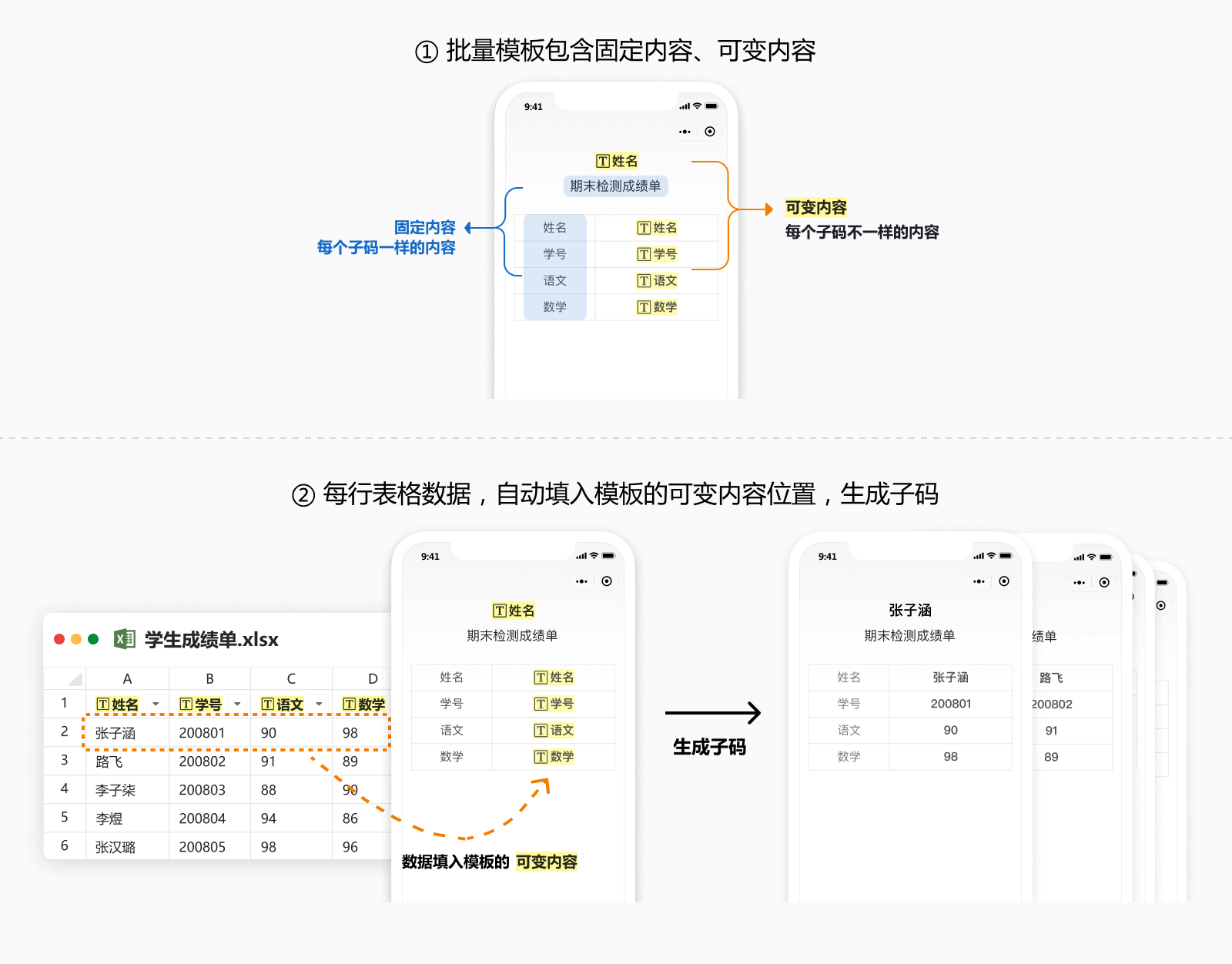 生成单个二维码,二维码上的所有内容均可修改,可以快速替换示例内容。