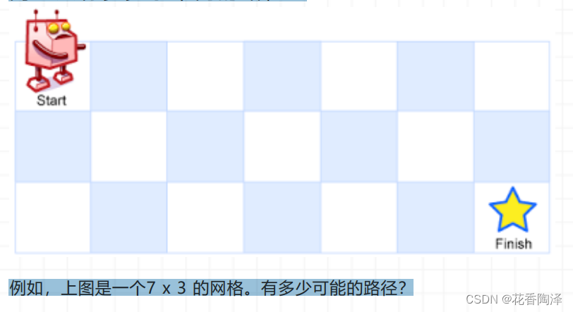 机器人试图达到网格的右下角(在下图中标记 为“ F ini sh”)。 问总共有多少条不同的路径?