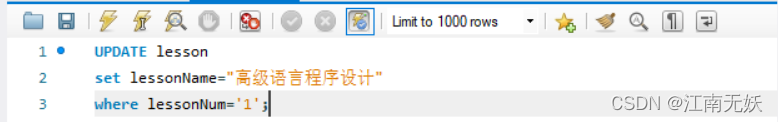 ③将课程号1的课程名称更新为“高级语言程序设计”