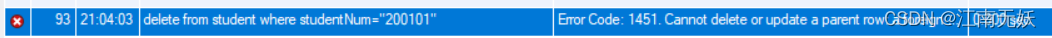 出现这种错误的原因是,studentNum同时也是其他表的外键,而在删除操作时会自动检查外链。