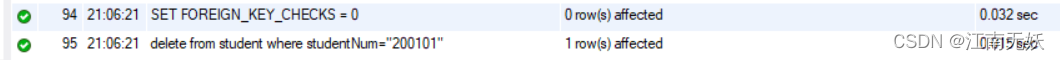 - 删除学生表中studentNum为“200101”的学生记录,如果不能请分析原因;