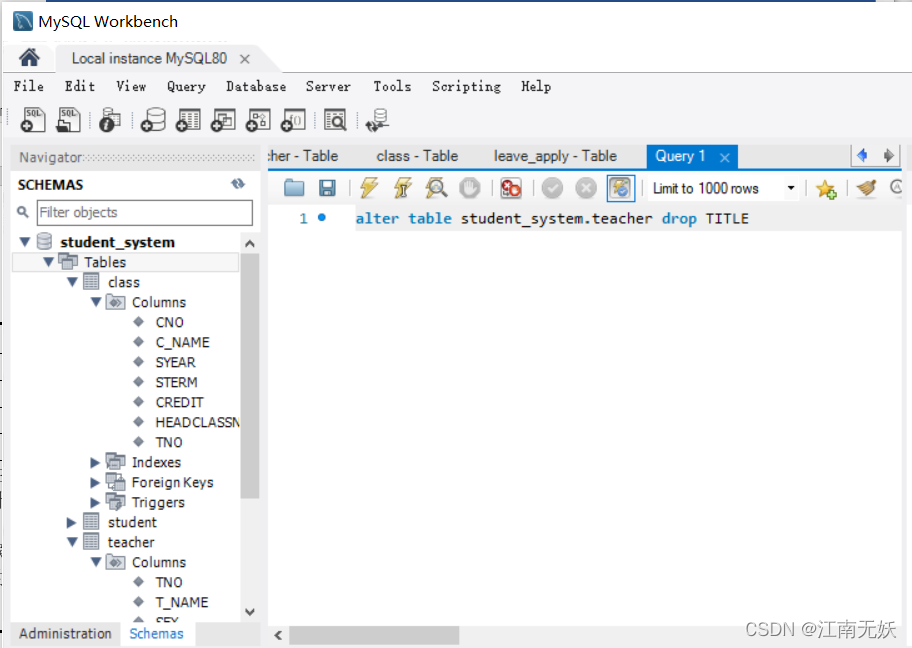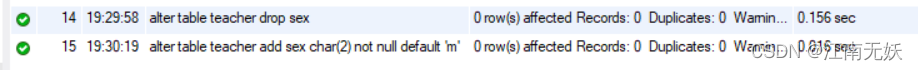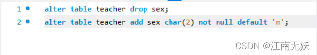- 使用alter命令修改表结构,删除教师表中的“title” 字段,然后再添加到表中;修改学生表中的“sex” 字段的类型为char(2);