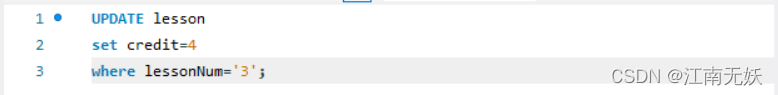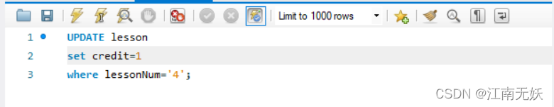 - 将课程号3的课程的学分更新为4分,将课程号4的课程的学分更新为1分,将课程号1的课程名称更新为“高级语言程序设计”;