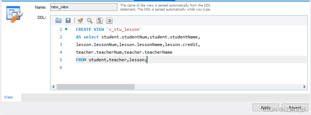 CREATE VIEW “VIEW_NAME”AS “SQL语句”