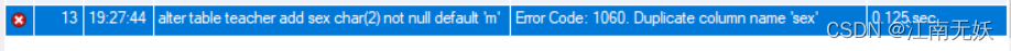 所以错误原因是出现了字段重复。需要先删去原本的sex字段,再进行添加。