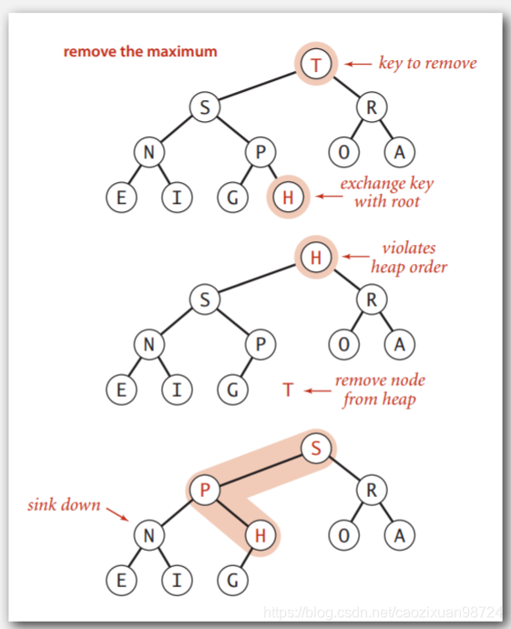 将最大值和最小值交换,通过N--把最大值删掉,然后通过上浮操作调整堆。