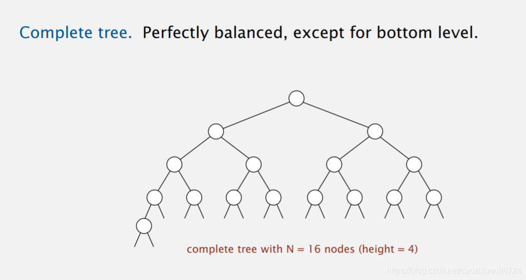 二叉堆可以看作是一棵二叉树,并且它是近似完全平衡的(除了最后一层节点),父节点不小于子节点(最大堆)