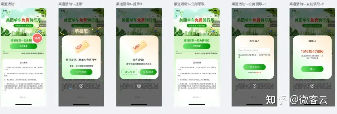 渠道活动是为霸王餐运营专门开发的一个邀请/下单裂变活动,不同的渠道可以参与不同的活动,设定不同的活动条件,给予不同的活动奖励,例如目前我们分站团队在地推过程中有贴单车广告的,也有外卖柜活动的等,但运营过程中发现个别方式来的很多用户,但用户转化率比较大,很多用户仅是关注了,但没有进行下一步点餐等,所以这个活动需求就来了,比如单车扫码用户,扫码关注之后,自动推送单车的活动,送他一张骑行券,再去做后续转换引导,那么参与度、转化率都会大大提高。