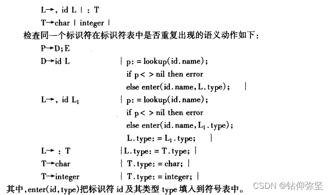 (1)构造一下翻译模式,把每个标识符的类型存入符号表;参考例6.2。