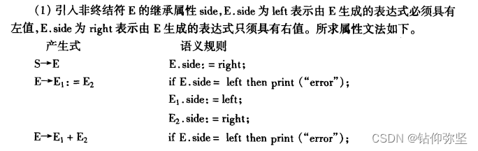 (1)试建立一个属性文法,用非终结符E的继承属性side表示由E生成的表达式出现在赋值运算的左边还是右边,检查表达式的左部是一个左值。
