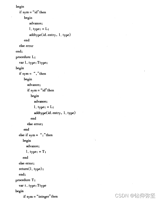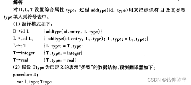 这是一个对说明语句进行语义分析的题目,不需要产生代码,但要求把每个标识符的类型填入符号表中。